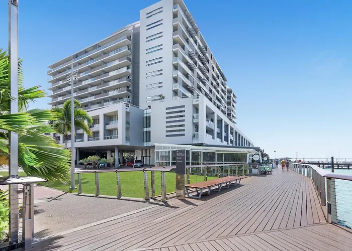 ベッドルーム1室のケアンズBelle Escapes - 405 Harbour Lightsアパートメントから徒歩で5分くらい離れたグリーンアイランドなどの市内のさまざまなランドマークに行きやすいです。 ケアンズ リージョナル ギャラリーからわずか600メートルに位置する広々とした75m²のアパートで、顧客はプールを利用できます。
